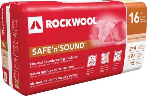 New, 6” thick ROCKWOOL Safe’n’Sound® is available in wood stud sizes of 15.25” (16”OC), 23” (24”OC) and 19.2” (19.2”OC I-Joists), while the the full line of Safe’n’Sound® batt insulation products continues to be available in a variety of dimensions for use in residential applications such as between floors, in ceilings, and interior partition walls. Its density and non-directional fibre structure helps it to absorb sound, creating a quieter indoor living space. Withstanding temperatures up to 1,177°C, Safe’n’Sound® is noncombustible and will not produce toxic smoke or promote flames spreading, even when directly exposed to fire. Made primarily of stone, Safe’n’Sound® is also GREENGUARD® Gold Certified and contributes to a healthier indoor environment.